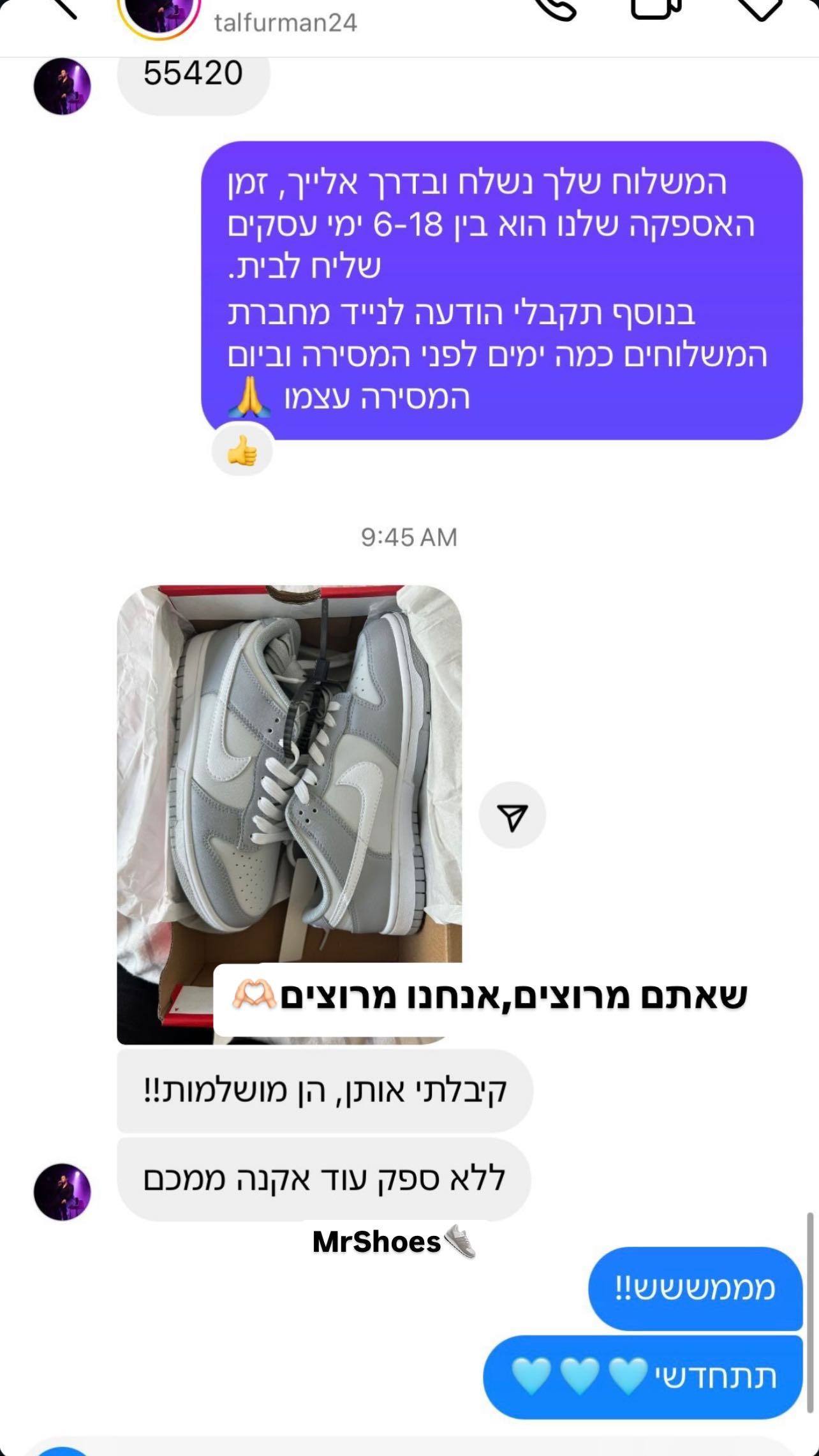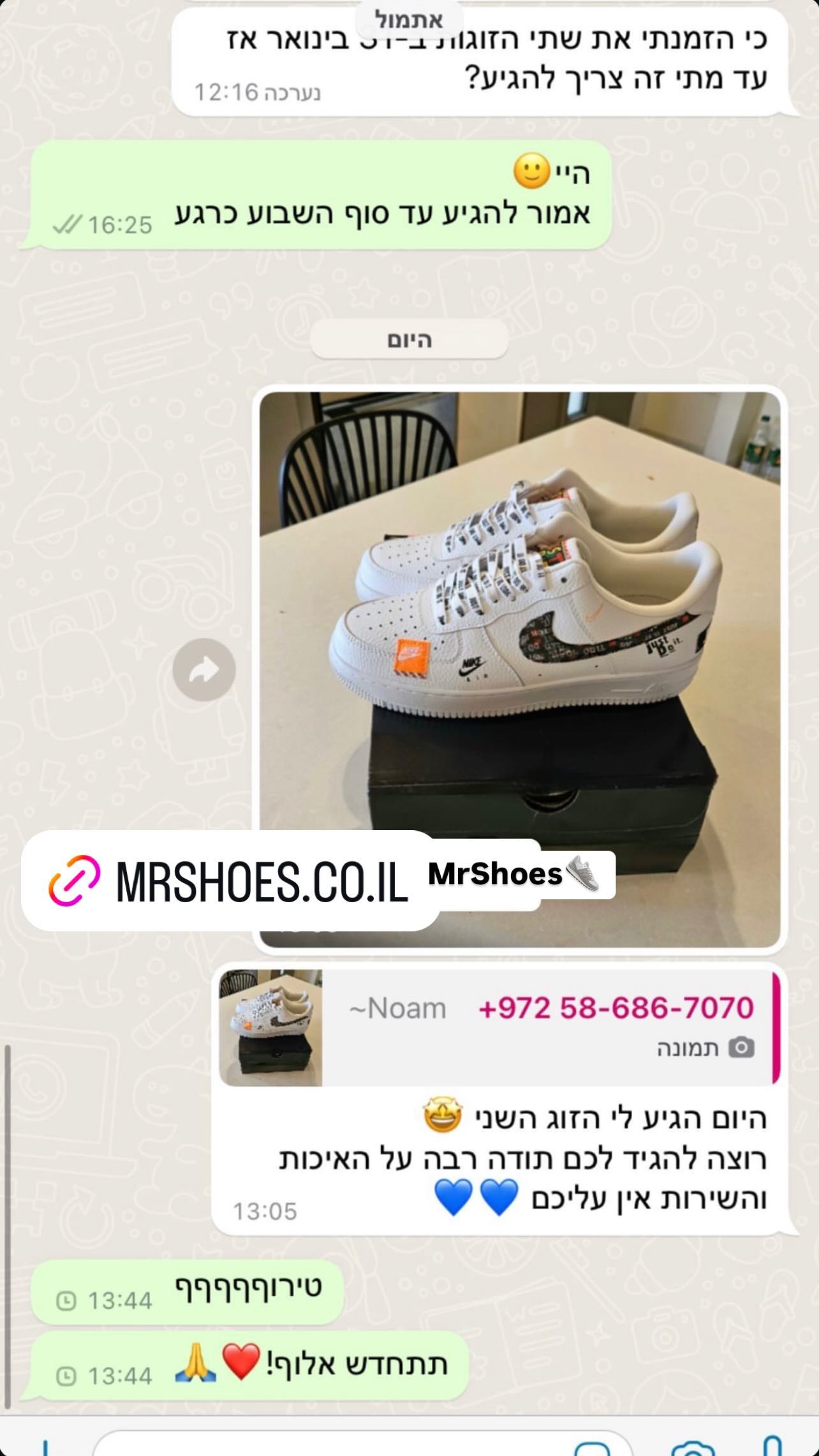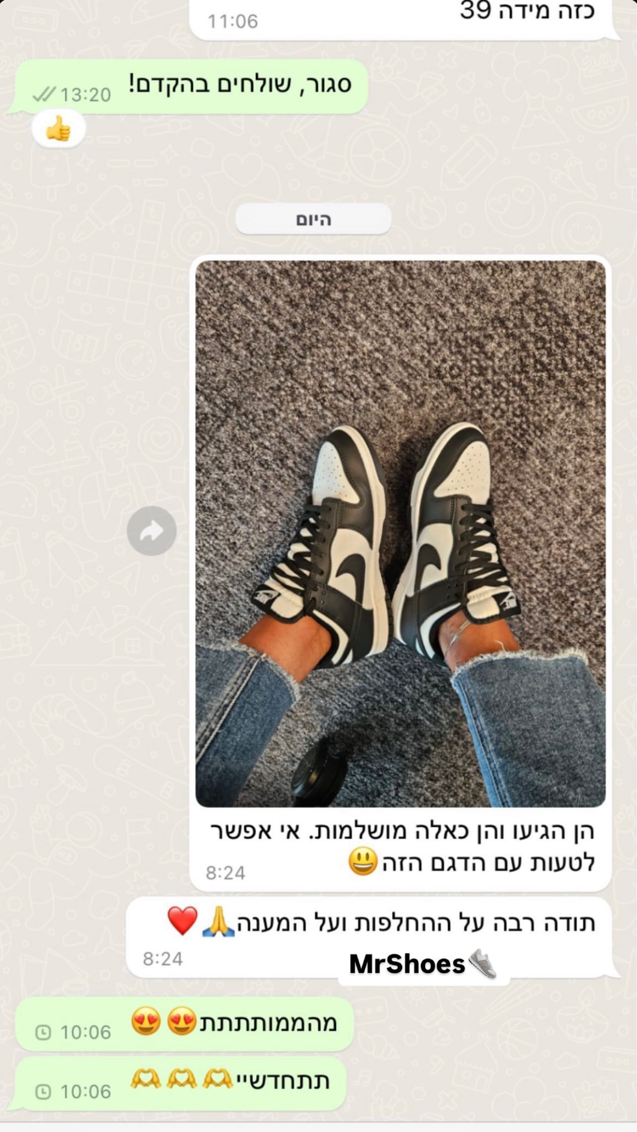נעליים איכותיות, שירות מצוין ומשלוח מהיר עד הבית! אני מאוד מרוצה ממר שוז.